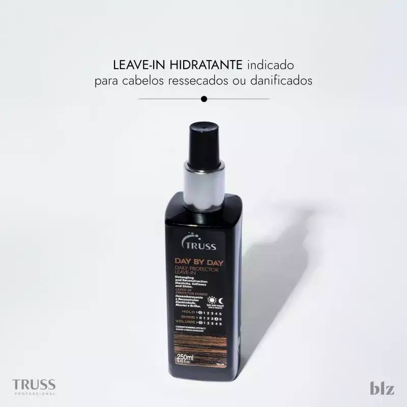 Leave-in para cabelos danificados e ressecados. Truss Day By Day protege os fios, facilita a escovação e reestrutura a fibra capilar.